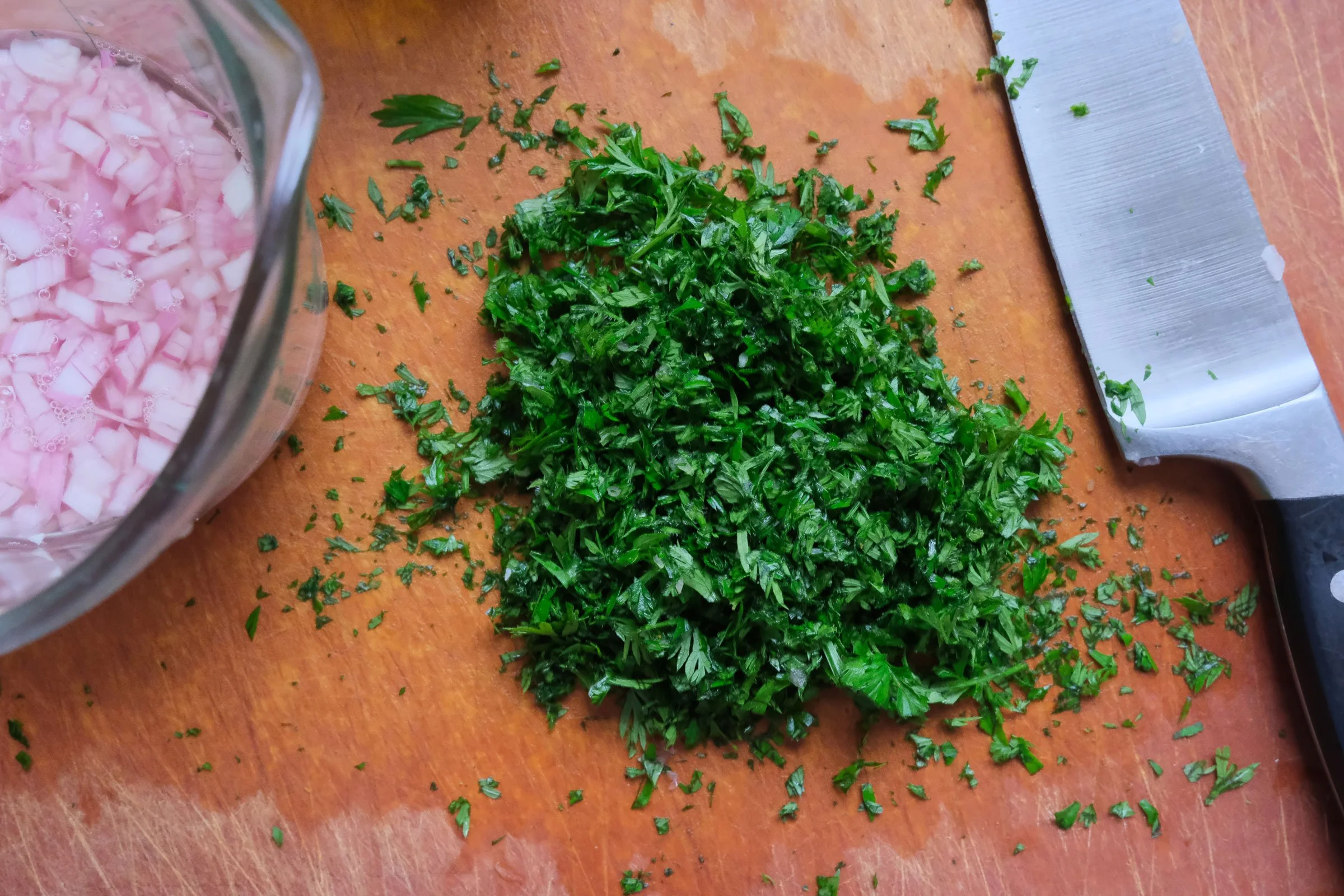 Although the carrots weren’t quite full-grown for this first harvest, they still produced beautiful edible fronds. If you haven’t tried fresh carrot greens, you can use them like you would parsley. In this case, we made a simple salsa verde that works great on eggs, tinned fish, bean salads, and crackers.